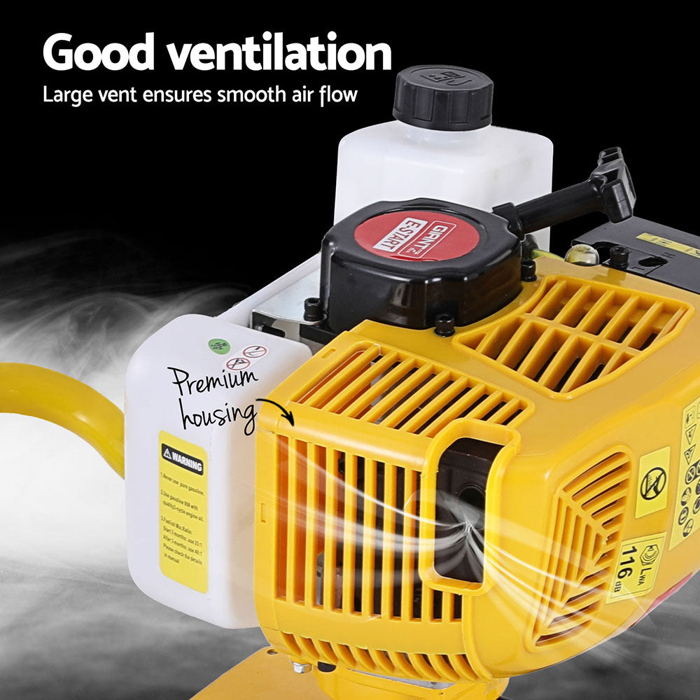 Introducing our robust Giantz Post Hole Digger, crafted from heavy-duty steel for durability, featuring a simple recoil start, vertical gearbox for enhanced performance, anti-vibration handle for comfort, easy-to-fill fuel tank, high torque output, and reliable efficiency.